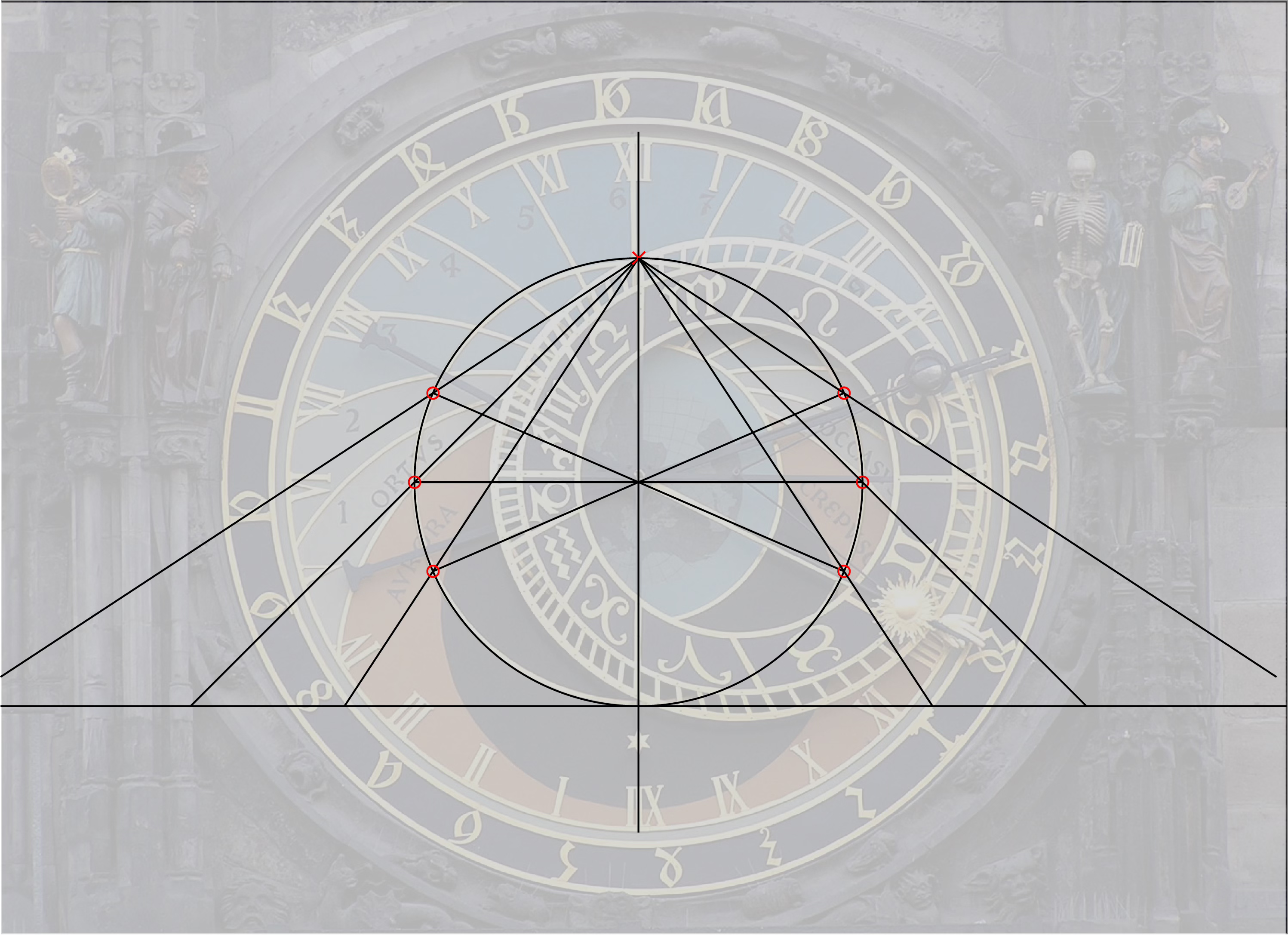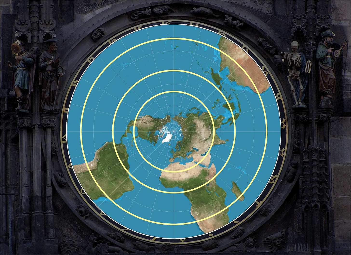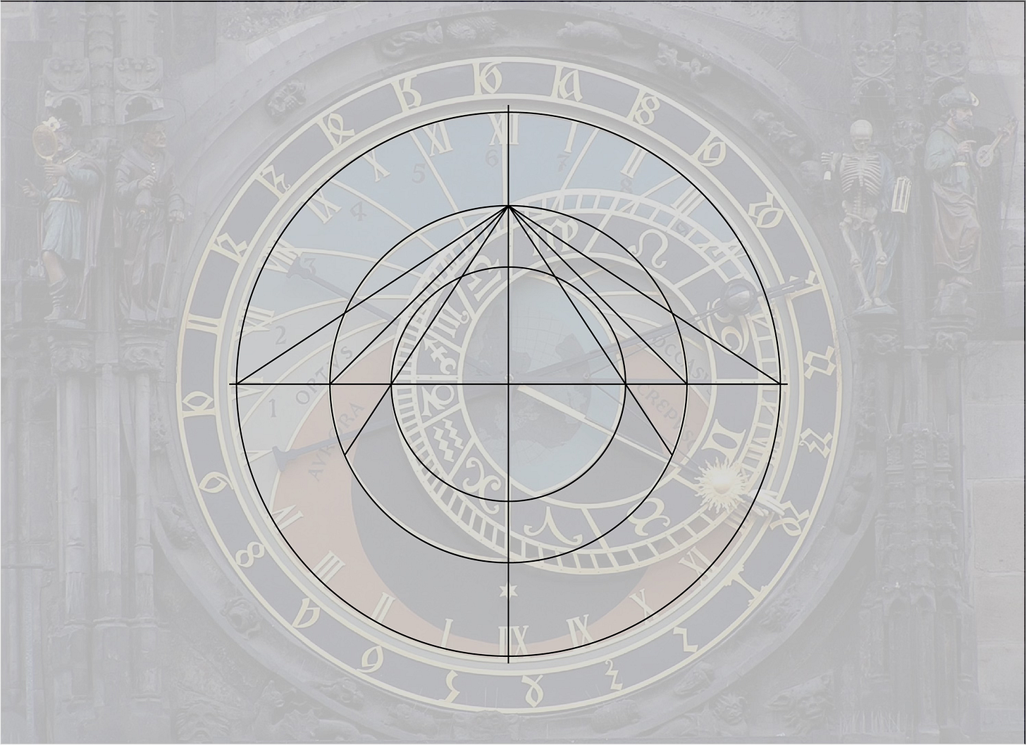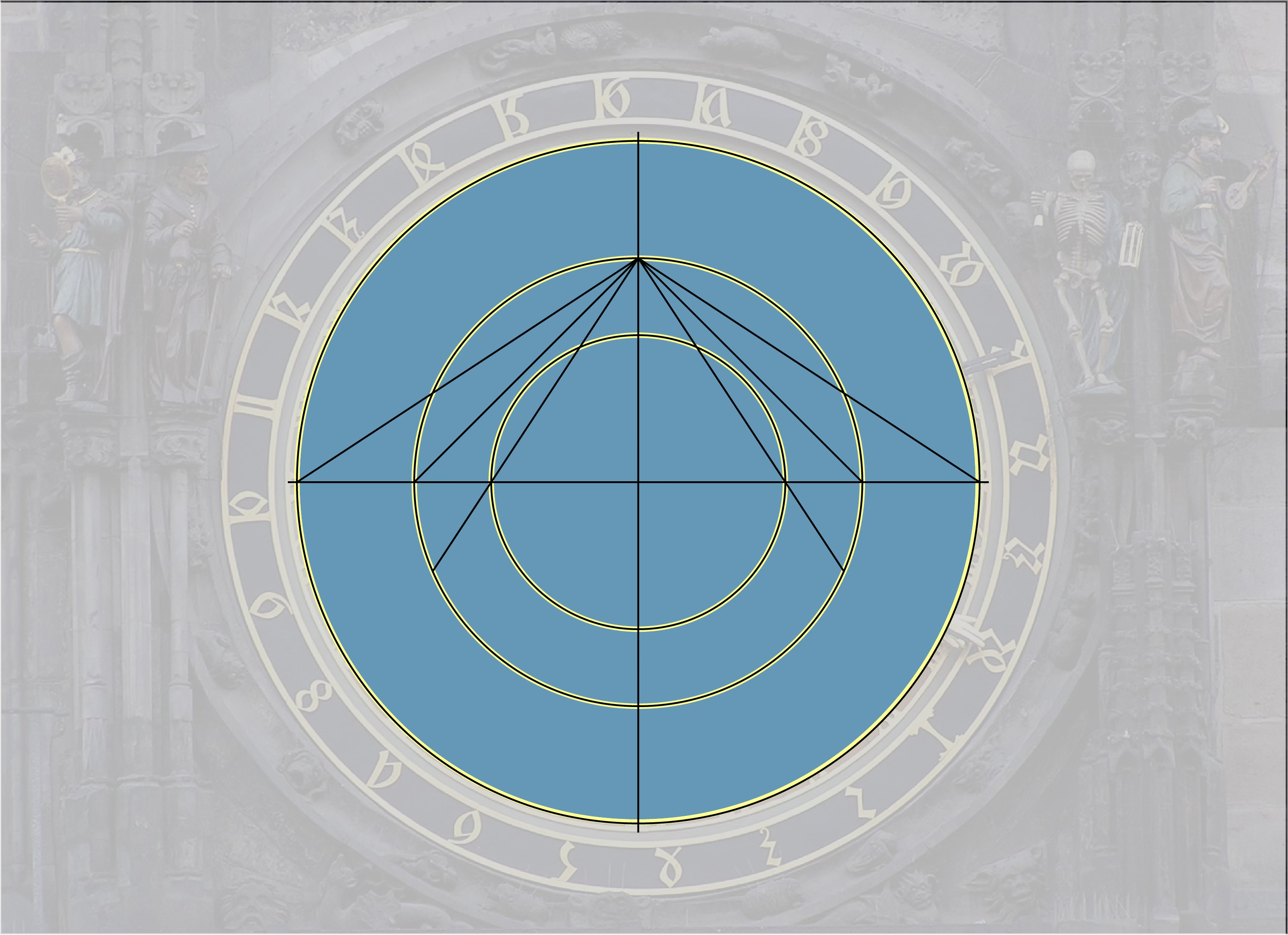 And that is how the astronomical clock is effectively a map of the Earth. The set of circles on which the clock face is based is determined entirely by the angle of the Earth’s tilt. For this reason, any astrolabe or astronomical clock anywhere on Earth will be built around three concentric circles with the same relative size. This is also true of the zodiac circle, which we will discuss in the next part of this series.